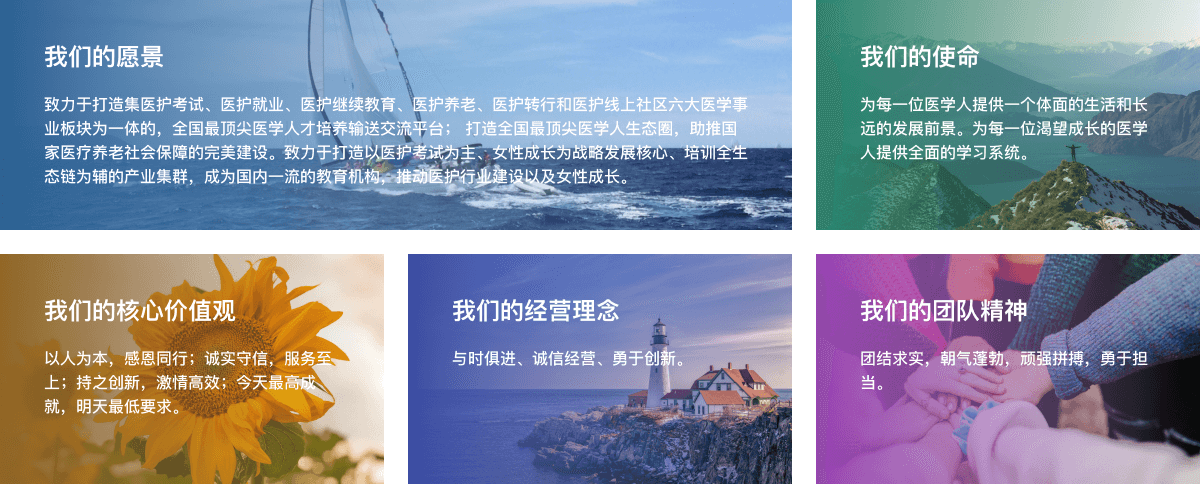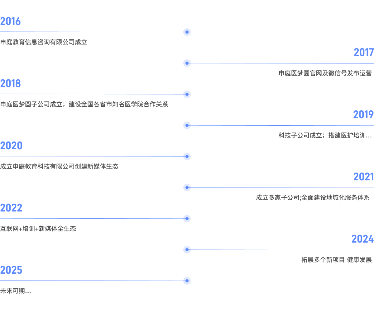 申庭教育成立至今,开设了医护考试、医护就业、医护继续教育、医护养老、医护转行和医护线上社区,是集六大医学事业板块为一体的全国优秀医学人才培养输送互联网平台
